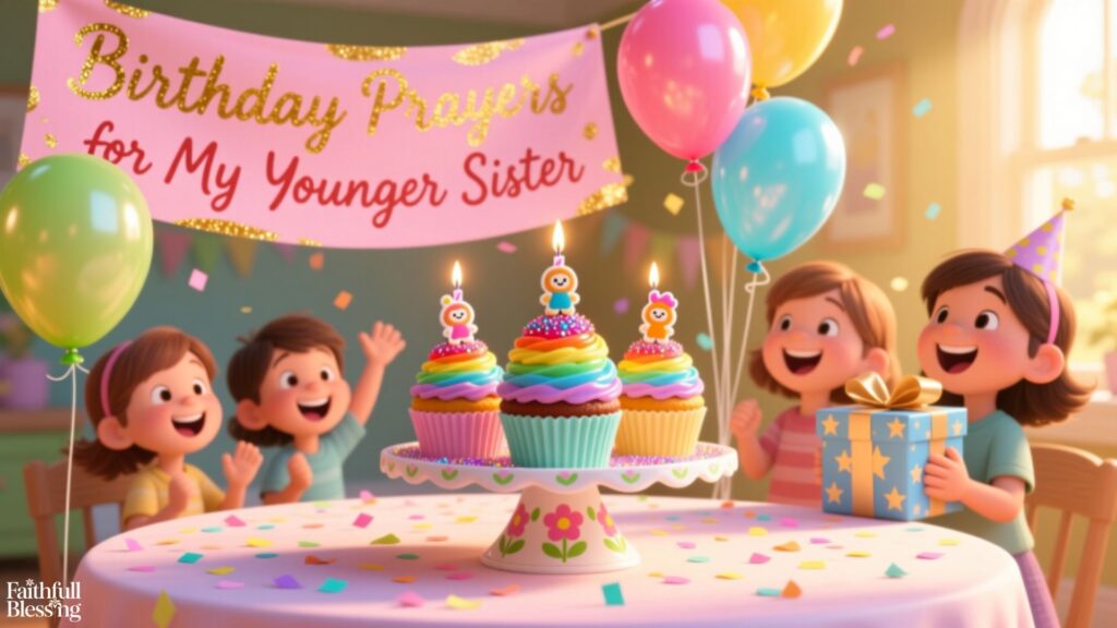 - Heavenly Father, watching my younger sister grow has been one of my greatest joys. I pray that You grant her wisdom beyond her years, courage to face any challenge, and faith that never wavers. Happy birthday, sweet sister. Amen.
