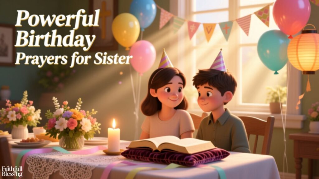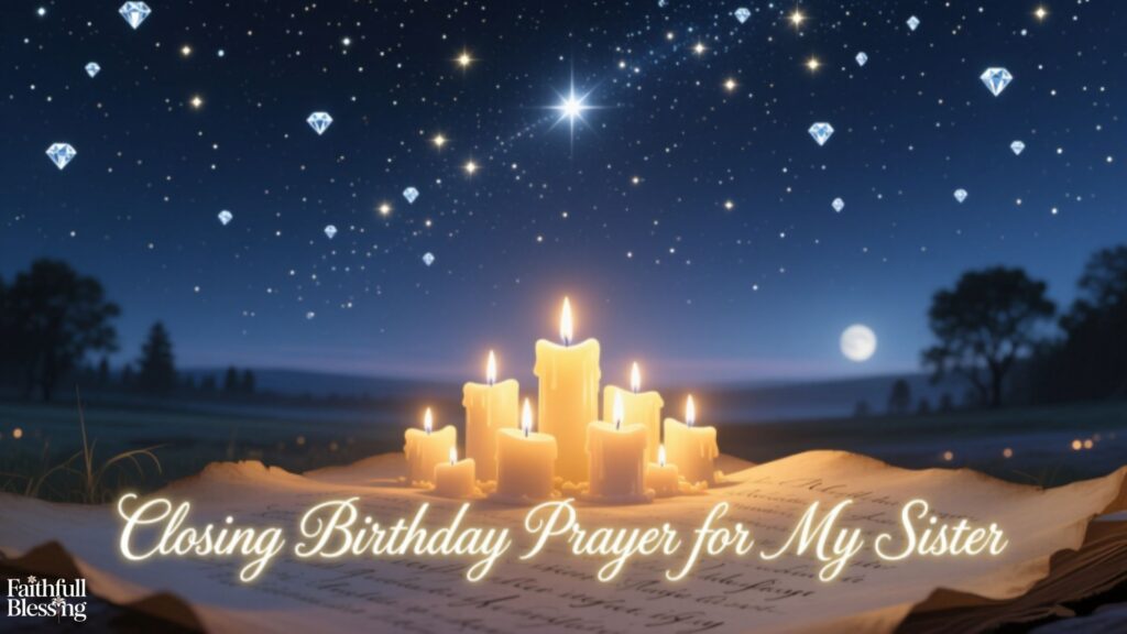 - Gracious God, as we close this birthday celebration, I thank You for the gift of my sister’s life. May the prayers lifted today continue to cover her throughout the year. Bless her going out and her coming in. May Your presence be her constant companion, Your word her daily guide, and Your love her eternal comfort. Grant her peaceful sleep, joyful mornings, and productive days. May she walk in divine favor, experience supernatural breakthroughs, and accomplish everything You have purposed for her life. Protect her from all harm, shield her from every attack, and surround her with Your angels. May this year be marked by growth, blessing, and spiritual maturity. In Jesus’ mighty name, I pray. Amen.