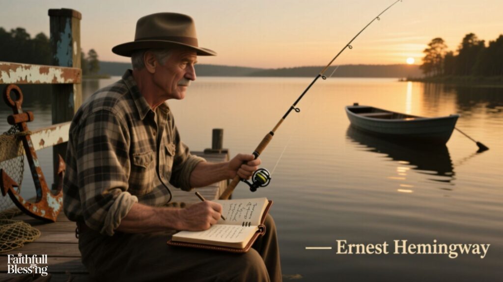 - “Hemingway understood that fishing strips away pretense—on the water, you can’t fake courage or dress up cowardice in fancy words.”