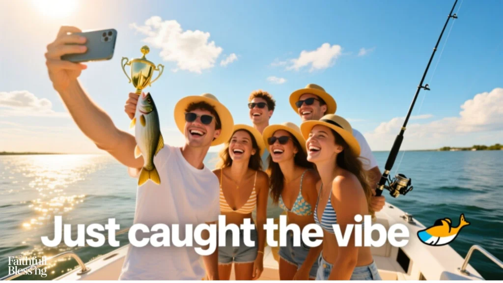 - “Fishing status: line in the water, phone on silent, soul on loud, and absolutely living for these moments that don’t need filters to look perfect.”