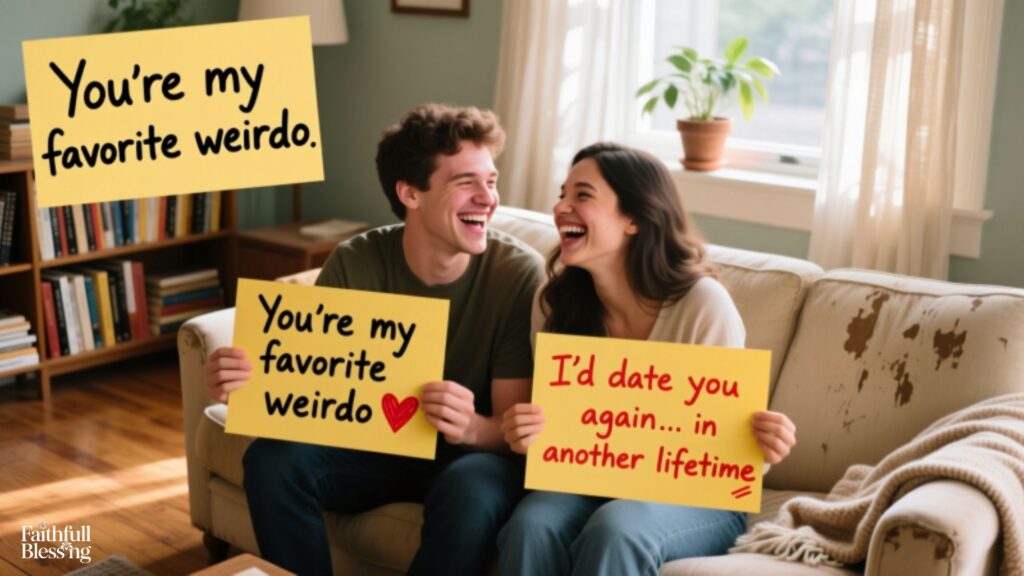 - “Every time you laugh, my heart does a little happy dance, and I fall for you all over again.”