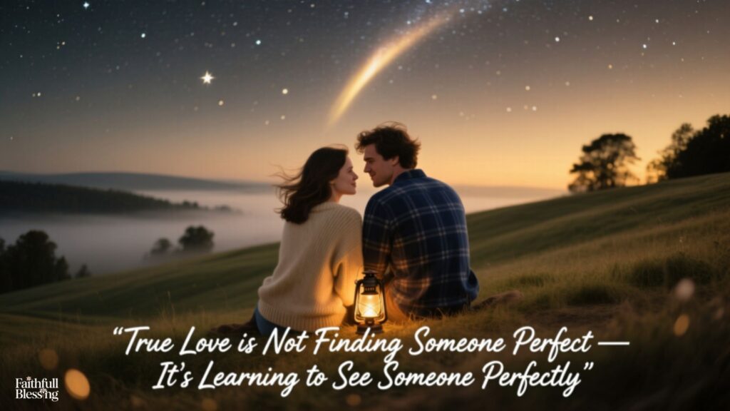 - “True love is not about perfection; it’s about seeing an imperfect person perfectly and choosing them every single day.”