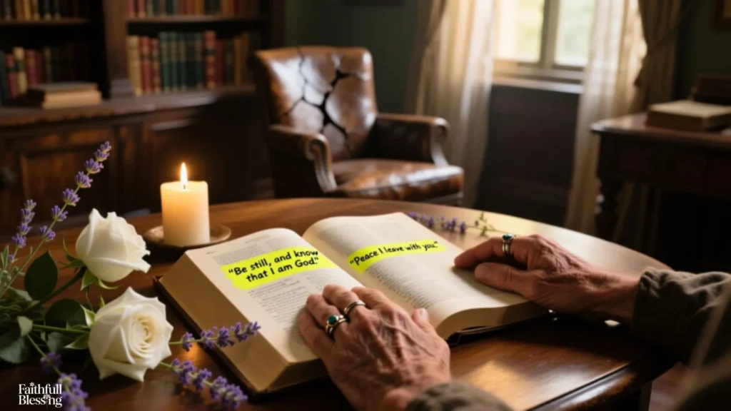 John 14:27 — “Peace I leave with you; my peace I give you.” It reminds us that God’s love brings calm after sorrow.